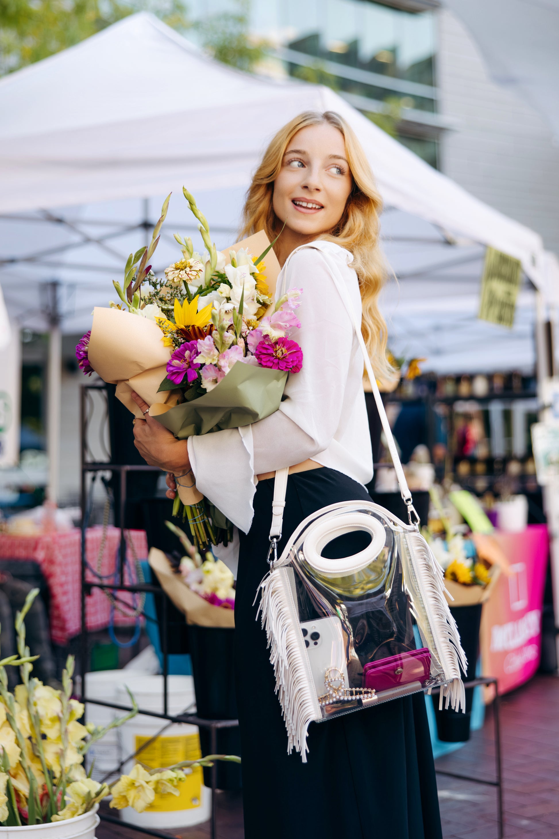 Introducing the sister to our best-selling Clear Fringe Crossbody! Designed for those who crave a touch of fringe, flair, and fun, our Clear Tote is perfect for the gal who likes to pack a little extra. With its spacious size, this tote is your go-to choice for concerts, festivals, or sporting events—keeping all your essentials in one stylish, standout bag.